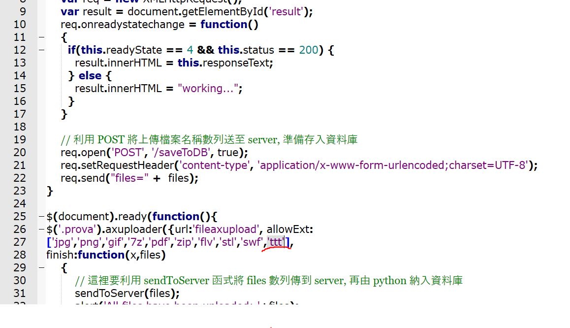 1.進入cd2020pj1/static/uploadform,程式裡新增.ttt